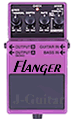 フランジャー 原理はコーラスと同じだが、こちらはよりアクの強いサウンド。 周期的にウネっていくサウンドはディストーションと組み合わせると、正に“ジェットサウンド”になる。クリアな音に使用すると、コーラスとはまた違った広がり方をしてくれるのでオススメ。 |
